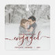 Commémorez votre fiançailles avec ce magnifique ornement de gardien moderne. Le texte rouge foncé dit "Notre premier Noël engagé", avec le mot "engagé" dans un élégant script d'écriture manuscrite avec des fioritures avant et après. Remplacez l'exemple d'image par votre photo préférée, et ajoutez vos noms et l'année. Un filtre dégradé blanc permet de faire apparaître le texte.