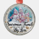 Celebrate your beautiful family of five with this gorgeous Premium Round Ornament. This Shabby Chic, high-end design features five adorable snowmen wrapped in cozy pink scarves, framed by sparkling silver and gold glitter and the heartwarming message: "Snowman Family with Little Snow, Big Love." It’s the perfect, personalized first Christmas gift for a family of 5 or a sweet, feminine addition to your holiday decor. A truly luxurious ornament to be cherished for years.
