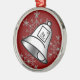 Bonne idée pour les professeurs de sciences ! Cette cloche de Noël a le symbole de tableau périodique pour argent, Ag. Des flocons d'argent sur un arrière - plan rouge foncé.