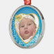Ornement En Métal Snowy Sky Blue Baby's First Christmas Photo Heart