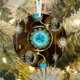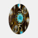 Turquoise lenses with antique watch with brass gears and golden keys on rusty, brown background. Steampunk style.