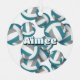 This volleyball themed ornament is printed on the front and back with the image of a cluster of varied size teal, gray and white volleyballs - customize with the athlete's name on the front and commemorative year on the back - by katz_d_zynes