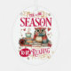A festive and cheerful Christmas holiday design showcases an owl in a cozy scarf perched on a big stack of books. Nearby are vibrant poinsettias and a steaming cup of cocoa, surrounded by hearts and stars. The colorful text reads, "'Tis the season to be reading." This charming design is available on various products, making it a perfect gift for book lovers.