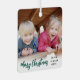 Célébrez les joies simples des vacances avec un ornement en métal carré recouvert de 2 photos. Les images et tout le texte de ce modèle sont faciles à customiser et peuvent être différents ou identiques sur l'avant et le dos. Il peut inclure n'importe quel libellé, comme Joyeux Noël, Joyeux Fêtes, Meilleurs Amis, enfants et noms de famille, etc. (CONSEIL EN MATIÈRE DE PLACEMENT D'IMAGE : Une façon simple de positionner une photo exactement comment vous voulez est de la rogner avant de télécharger sur le site Zazzle.) Le design et le vert festif, blanc et noir présentent une calligraphie de script brossé chic tendance, des noms de typographie minimaliste simple et moderne et l'année, et deux photos de votre choix. Cette tenue unique ajoute une touche élégante à la décoration de la maison de Noël. Joyeux Noël!