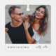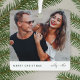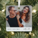 A stylish holiday photo ornament with modern typography “Merry Christmas" in dark forest green and handwritten script typography for the couples name(s) on a clean simple minimalist white background. The photo, name and greeting can be easily customized for a personal touch. A simple, minimalist and contemporary christmas design to stand out this holiday season! The image shown is for illustration purposes only to be replaced with your own photo. The placeholder image is of a happy couple.