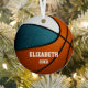 Cette équipe colorent l'ornement de basket-ball de gardien pour les filles ou les garçons avec l'image réaliste d'un basketball qui a deux panneaux recolorés - un turquoise et un blanc - personnalisent le devant et le dos de l'ornement avec le nom du joueur et l'année commémorative - par katz_d_zynes