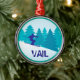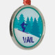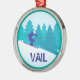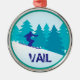Quel meilleur endroit pour passer des vacances de Noël que sur les pistes de ski de Vail, Colorado ? Même si vous ne pouvez pas être là en personne, cet ornement de gardien peut vous y emmener en esprit. Il présente une image circulaire en turquoise et bleu d'un skieur de neige silhouette devant les pins sur une montagne enneigée. Le bas a du texte en relief en bleu qui dit VAIL. *L'image clipart utilisée dans cette conception est protégée par le droit d'auteur de Encore Software, Inc., qui permet son utilisation à ses concédants de licence. Tous droits réservés.
