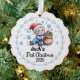 Célébrez la première saison de vacances d’un bébé avec cet adorable ornement de Noël personnalisé. Doté d’un mignon ours en peluche et d’ornements festifs, il dit "Jack’s First Xmas" (le nom est entièrement modifiable). Un cadeau de vacances idéal pour rester accroché à l'arbre généalogique année après année, ou un cadeau de vacances bien pensé pour les nouveaux parents et grands-parents.