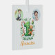 Celebrate the season with this charming photo glass ornament, thoughtfully designed in a whimsical gingerbread‑and‑candy cane motif. Crafted from clear glass, it features a vibrant gingerbread man holding a red‑and‑white candy cane, framed by holly‑leaf accents and festive ribbon. The glass front is personalized with a favorite photograph — making this ornament both decorative and sentimental.