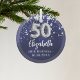Ornement En Verre 50e anniversaire marine bleu argent étoiles