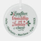 Un arrière - plan transparent. Personnalisez et ajoutez vos noms et une année. Citation : Rires, amitié et joie des fêtes. Texte vert et rouge.