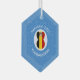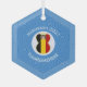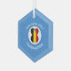 Un ange vêtu du drapeau de la Belgique sur un ornement en verre de forme hexagonale pour Hanukkah. Cette décoration de Hanukkah est conçue spécialement pour les familles de religions multiples. L'ange au drapeau belge vole au centre d'un cercle de carrés blancs ondulés entouré d'un fond de carrés bleus ondulés. Personnalisez avec un nom. Personnalisez avec l'année. Vous pouvez également modifier le texte comme vous le souhaitez.