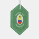 Décor de Noël ornement en forme d'hexagone avec un grand ange aux cheveux, pour honorer Abuela, portant le drapeau jaune, bleu et rouge de la Colombie. L'ange colombien abuela vole dans un cercle blanc de carrés grossiers sur un arrière - plan vert de carrés grossiers. Personnalisez pour Noël avec un nom, customisez avec l'année. Ou, ajoutez votre propre texte.