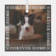 Commémorez un animal de compagnie 1er noël dans leur maison éternelle avec cet élégant ornement en verre photo. Le design présente le texte 'FOREVER HOME' en typographie blanche encadrant une image de votre choix, de mignonnes petites empreintes blanches avec centres cardiaques et leur nom.