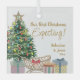 Notre première attente de Noël ! L'ornement de vacances personnalisées gardera l'amour pour votre premier Noël en attendant votre 1er bébé. Le design comprend un arbre de Noël éclairé avec un lit d'enfant et des cadeaux emballés. Personnalisez avec vos noms et l'année et, éditez le mot "attendu!" si vous le souhaitez. Parfait comme un faire-part de grossesse ou comme un petit cadeau sentimental pour vous-mêmes.