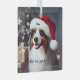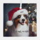 Ce magnifique dessin de Noël montre un berger australien adorable portant un chapeau de Père Noël rouge.