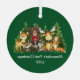 Première aquarelle de Noël de bébé Animaux de forêt Animaux de forêt Ornement en verre de bébé. Bébé Les animaux comprennent l'ours avec une corneille rouge, le cerf, l'orignal, le raton laveur, le lapin lapin, le renard et la chouette avec la végétation forestière. Ajouter un nom. Arrière - plan vert forestier.