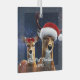Cette conception comporte une rondelle et un doe qui portent des chapeaux de Père Noël dans la neige.