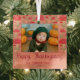 Bon thanksgiving Champignon Rouge Automne Photo Ornement en verre. Un beau motif de champignons rouges aux couleurs de l'automne. Personnalisez l'ornement avec votre photo, nom de famille et année. Une belle tenue de vacances Thanksgiving personnalisée.