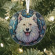 Ornement En Verre Bordure bleu Chien Samoyé retenue