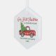 Script de brosse moderne Notre premier Noël dans notre nouvel ornement de verre de maison comprend l'aquarelle Vintage Camion rouge avec arbre de Noël - Rouge et vert de la forêt