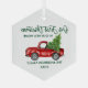 Script de brosse moderne Notre premier Noël dans notre nouvel ornement de verre de maison comprend l'aquarelle Vintage Camion rouge avec arbre de Noël - Script vert de forêt