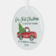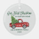 Script de brosse moderne Notre premier Noël dans notre nouvel ornement de verre de maison comprend l'aquarelle Vintage Camion rouge avec arbre de Noël - Script vert de forêt