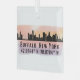 Caractéristiques de l'ornement de verre Buffalo New York silhouette avec éclat d'aquarelle et coordonnées de latitude et longitude