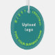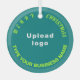 Joyeux Noël! Ornement en verre avec des textes de voeux de Noël Joyeux, votre nom d'entreprise ou de compagnie et logo. Les dessins sont des textes vert jaune sur arrière - plan vert turquoise et en forme de cercle. Ornement pour décorer le sapin de Noël dans votre magasin, magasin ou bureau. Ornement pour accueillir visuellement vos clients cette saison de vacances et pour annoncer votre entreprise ou promouvoir votre marque. Customisez-le et utilisez-le pour sensibiliser la marque. Veuillez vérifier l'apparence après avoir téléchargé le logo et tapé votre nom d'entreprise. Si l'apparence vous plaît, vous pouvez passer votre commande maintenant. Si vous avez besoin de redimensionner et déplacer le logo et les textes pour s'adapter à cet ornement ou à d'autres styles que vous choisirez, s'il vous plaît changer dans l'outil de conception. Vous pouvez également effectuer d'autres modifications selon vos préférences dans l'outil de conception, comme changer la couleur de l'ornement, la couleur de police et le style de police. Joyeux Noël! Je vous souhaite plus de ventes cette saison des Fêtes.