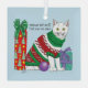Un chat blanc portant un pull de Noël moche et se demandant comment le pull les regarde.