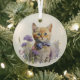 Ornement En Verre Chaton Tabby Orange avec Cravate Bow Aquarelle