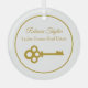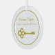 Cet ornement moderne de Noël de réacteur est fait sur mesure avec le nom de votre entreprise immobilière sous le nom de l'agent dans la typographie chic. Ce cadeau minimaliste d'or et de blanc présente une élégante clé de maison en or. Vacances contemporaines présentes pour un agent qui travaille pour vous aider à acheter une maison.