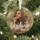 Le diplômé est écrit en blanc manuscrit sur votre photo de portrait senior fait un ornement chic et moderne pour garder son diplôme de Noël. Customisez ce cadeau avec votre année de classe secondaire ou universitaire 20232 sous la typographie audacieuse et ajoutez une jolie photo de votre senior.