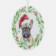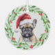 Ornement de Noël de Noël avec une aquarelle tan Frenchie (French Bulldog) et aquarelle conception de la couronne de Noël. Ajoutez le nom du chien au design et c'est l'idée cadeau parfaite pour cet amant français que vous connaissez, ou vous-même !