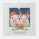 Noël Cochon Couple Cute Père Noël et Reindeer - idéal comme "notre premier Noël en tant que nouveaux mariés" - des ornements d'arbres de Ricaso - facile à personnaliser avec vos propres détails - conçu avec deux cochons adorables - l'un portant un chapeau de Père Noël l'autre en bois sur un arrière - plan bleu neige - un beau gardien de vacances