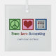 Peace Love Accounting. Un joli cadeau d'ornement comptable de Noël pour un CPA qui travaille dans un bureau pendant la saison fiscale avec un signe de paix, le coeur, et calculateur cool.