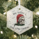 Crâne portant le chapeau de Noël gothique Ornement d'arbre de Noël - Apportez une ambiance éffrayante à votre décor de vacances avec cet ornement en verre hexagonal avec un crâne moussant dans un chapeau de Père Noël et écharpe verte. Le design étrange est dressé contre un arrière - plan blanc avec des chauves-souris grises volant, ce qui en fait un parfait mélange de déplaisant et de festif. La police de style gothique dit : "Ayez-vous un petit Noël effrayant", ajoutant une sombre touche de fête. Ce décor de Noël personnalisable vous permet de personnaliser l'année ou de changer le message, offrant une touche unique à vos décorations de vacances. Idéal pour les amateurs de décors alternatifs de Noël, Creepmas, Noël, Gothmas ou Halloween qui aiment les thèmes sombres et éffrayants de Noël. Il fait également une grande décoration d'arbre de Noël sur le thème du crâne ou le cadeau parfait de Noël goth. Ajoutez une touche personnalisée à votre décor de vacances sombres cette saison!