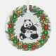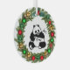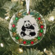 A Christmas wreath with a giant panda in the center decorates this adorable glass ornament