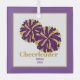 Ce ornement en verre est présenté dans une taille carré avec un pom pom amusant et le texte de "pom-pom girl" à l'avant. Couleur multiple. Personnalisez avec le texte du nom et de la date. Customisez cet objet avec ce modèle ou achetez comme indiqué. Couleurs dominantes violet et or.