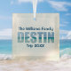 Ces ornements de Noël Destin Florida personnalisés cool portent votre nom de groupe personnalisé pour une réunion de famille ou un voyage sur la Côte d'Émeraude. Les lettres du mot DESTIN sont remplies de beaux souvenirs de conservation de la photographie océanique pour vos vacances.
