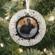 Lapin noir dans les rues pavées d'Italie sur un ornement en verre de Noël. Décor de vacances moderne et élégant avec le nom de l'animal de compagnie sur votre photo de lapin la plus mignonne. Marque nouvelle personnalisable Zazzle Christmas Pet Ornament pour 2025.