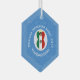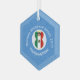 Un ange vole avec le drapeau du Mexique pour Hanoukka. Conçue pour les familles aux multiples religions, elle vole dans un cercle blanc de carrés crasseux sur un arrière - plan de carrés bleus, sur un ornement en verre hexagone. Customisez en ajoutant l'année que vous voulez rendre ce spécial. Personnalisez avec votre nom, ou le nom de quelqu'un d'autre si donner était un cadeau. Conçu pour ajouter de la joie à votre décor Hanoukka en cette période de vacances.