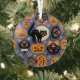 Ornement En Verre Éffrayant Chats Citrouilles Violet Motif