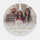 Elégant or et blanc Lettré "Joyeux Noël" Script de la famille de photos ornement. Comprend votre photo de famille préférée, "Joyeux Noël" calligraphie texte en écriture manuscrite, nom de famille et année. Facile à personnaliser. Conseil photo : recadrez votre photo sur le formulaire carré avant de la télécharger.