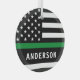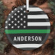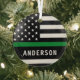 Mince ligne verte Drapeau militaire ornement, un complément parfait à votre décor de Noël! Montrez votre soutien aux hommes et aux femmes courageux qui protègent nos frontières, nos parcs et notre faune. Ce décor simple et moderne présente le drapeau américain avec une fine ligne verte représentant les agents fédéraux d'application de la loi, la patrouille frontalière, les gardes-chasse, les rangers de parc, les agents de conservation, l'armée, la marine et les marines. Fabriqué avec des matériaux de haute qualité, cet ornement est conçu pour dernier pour les années à venir. Accrochez-le à votre arbre, à votre couronne ou à n'importe quel autre endroit où vous voulez montrer votre amour pour notre pays et ceux qui le servent. Il fait un cadeau réfléchi à toute personne dans l'armée ou les forces de l'ordre, ou à toute personne qui veut montrer son soutien à ces héros pendant la période des fêtes. Célébrez les fêtes avec style avec l'Ornement militaire à drapeau vert mince. Commandez la vôtre aujourd'hui et montrez fièrement votre patriotisme et votre gratitude pour ceux qui défendent notre liberté. DROIT D'AUTEUR © 2023 Judy Burrows, Black Dog Art - Tous droits réservés. Ornement de Noël militaire en verre de Noël de ligne verte mince personnalisé
