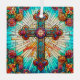 Croix de style Fleur de liste multicolore et vibrante avec fleurs en vitrail