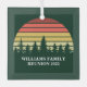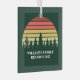 Cool jumelant des ornements de Noël en vert pour tout le groupe lors d'une sortie nature ou d'un séjour de camping. Ces cadeaux de conservation personnalisés présentent un magnifique coucher de soleil vintage sur une forêt de jolis arbres sous votre texte personnalisé.