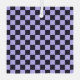 A checkerboard pattern with alternating lavender and black squares fills the image. The repeating geometric design gives a balanced and rhythmic appearance.