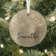 Customize the modern handwritten style script to create your own two-sided round glass Christmas ornament.