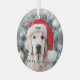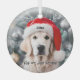 Ce magnifique design de Noël montre un doux Golden Retriever portant un chapeau de Père Noël rouge.